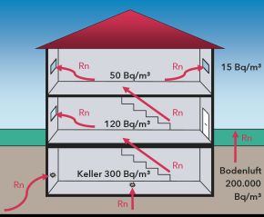 Gelangt Radon durch bauliche Undichtigkeiten – etwa Setzungsrisse oder unzureichend abgedichtete Leitungsdurchführungen – in Gebäude, kann die Radonkonzentration in der Innenraumluft empfohlene Grenzwerte überschreiten und ein Gesundheitsrisiko darstellen.