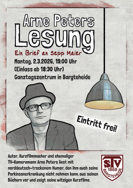 Er war mit der Kamera ganz nah dran am Geschehen, heute fokussiert er das Leben mit dem Stift und viel norddeutschem Humor: Der TSV Bargteheide lädt am Montag, den 02. März 2026, zu einem besonderen Abend mit dem Autor und Kurzfilmmacher Arne Peters in das Ganztagszentrum ein.