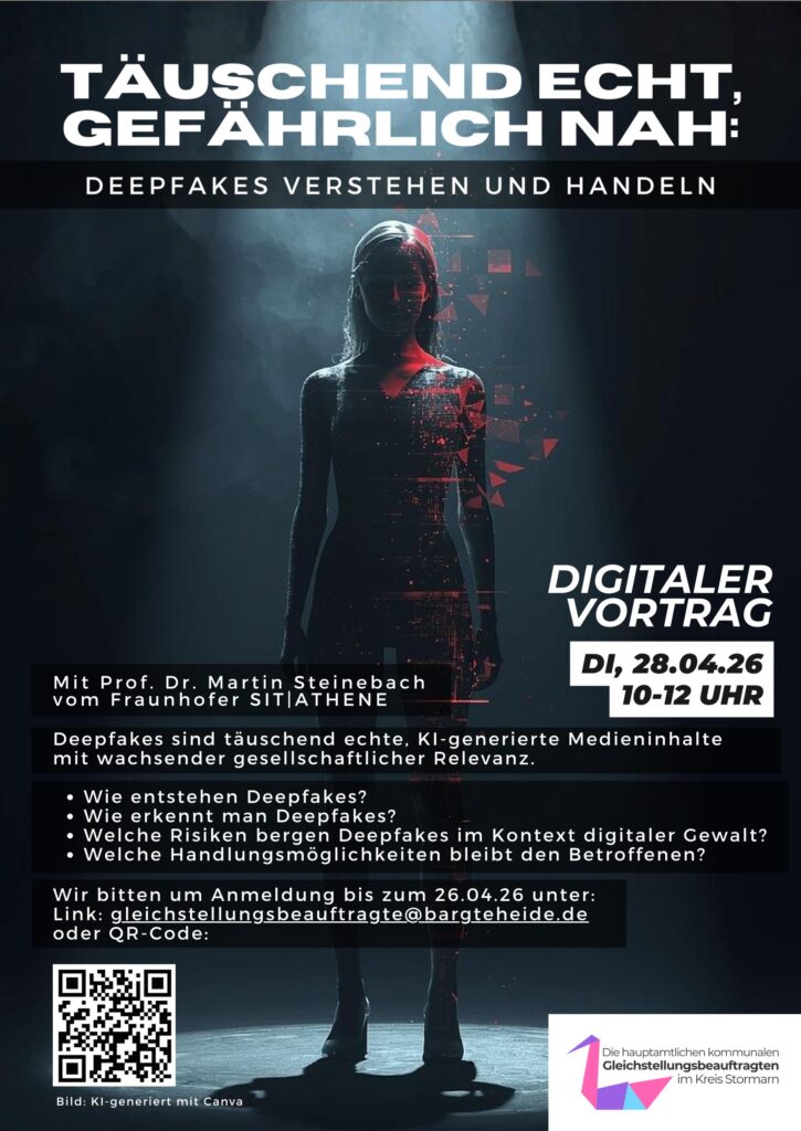 am 28. April 2026 von 10:00 bis 12:00 Uhr findet ein digitaler Vortrag, organisiert von den hauptamtlichen kommunalen Gleichstellungsbeauftragten des Kreises Stormarn, mit Prof. Dr. Martin Steinebach vom Fraunhofer-Institut für Sichere Informationstechnologie SIT statt.