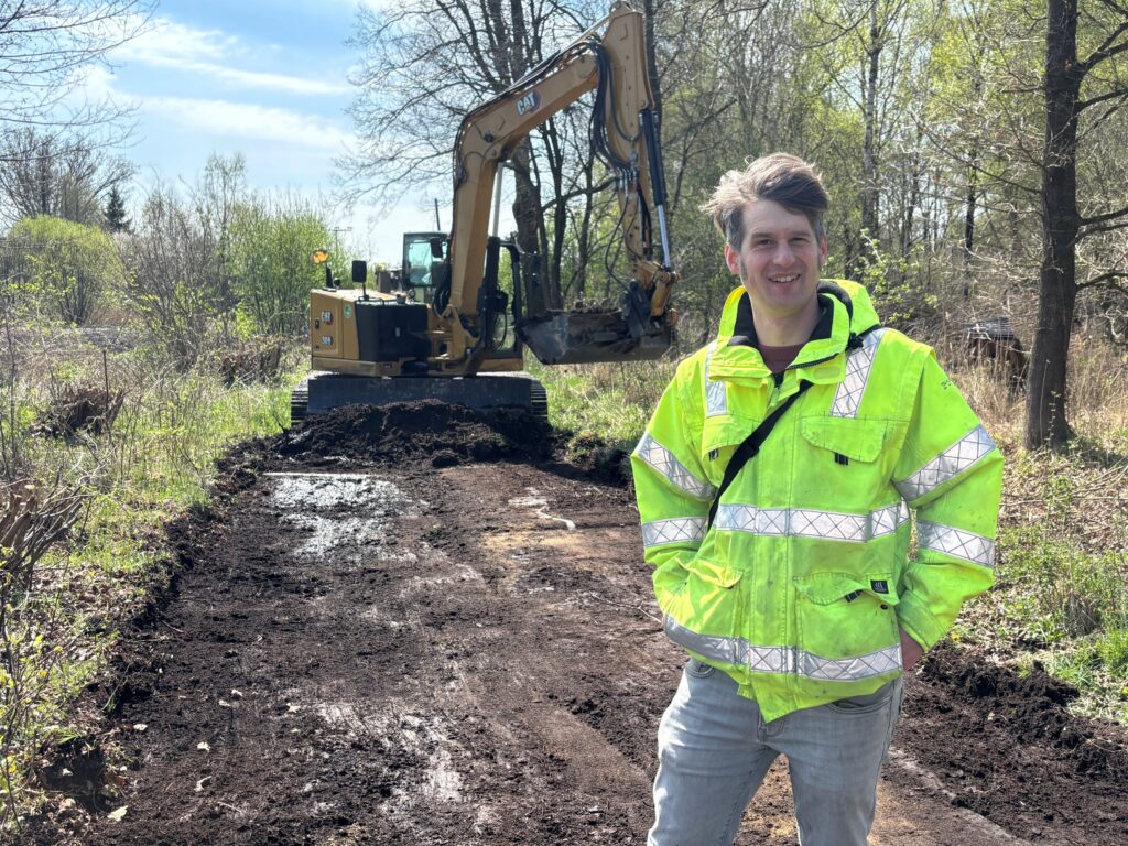 Diese Pause nutzt das Moor-Team der Stiftung Naturschutz Schleswig-Holstein, um den Weg im Osten des Moores zu verbessern. Denn dieser ist zu niedrig und wird dadurch oft nass und matschig. Nun können Radfahrer*innen und Spaziergänger*innen sich auf dem Weg entlang des Moores sicherer fortbewegen. Zu sehen sind die Pauldi-Matten nicht, denn sie wurden unter einem Kies-Sand-Gemisch eingebaut.