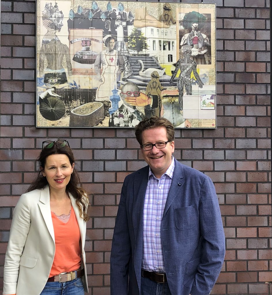 Foto: Tanja Lütje und Martin Habersaat vor „Bad Oldesloe’s Miraculous Mud“ von Siobhan Tarr. Das Kunstwerk im öffentlichen Raum wurde anlässlich des Kreisjubiläums 2017 als Kooperationsprojekt zwischen der Theodor-Mommsen-Schule und der Künstlerin Tarr umgesetzt und vom Kreis finanziell unterstützt.