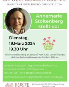 Der Frühling naht und auch die Neuerscheinungen der Verlage werden täglich mehr. Zeit, dass Annemarie Stoltenberg wieder nach Bargteheide kommt, um uns einen unterhaltsamen und informativen Überblick über frisch erschienene Bücher zu verschaffen!