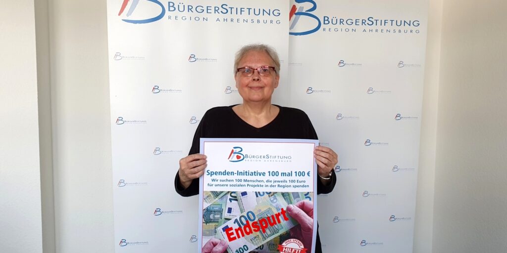 Die Spendeninitiative der BürgerStiftung hat das Ziel, soziale Förderprojekte in der Region zu stärken. Für 2025 werden 100 Menschen gesucht, die jeweils 100 Euro spenden, um eine Gesamtsumme von 10.000 Euro zu erreichen. 81 Spender/innen haben sich an der Aktion schon beteiligt.