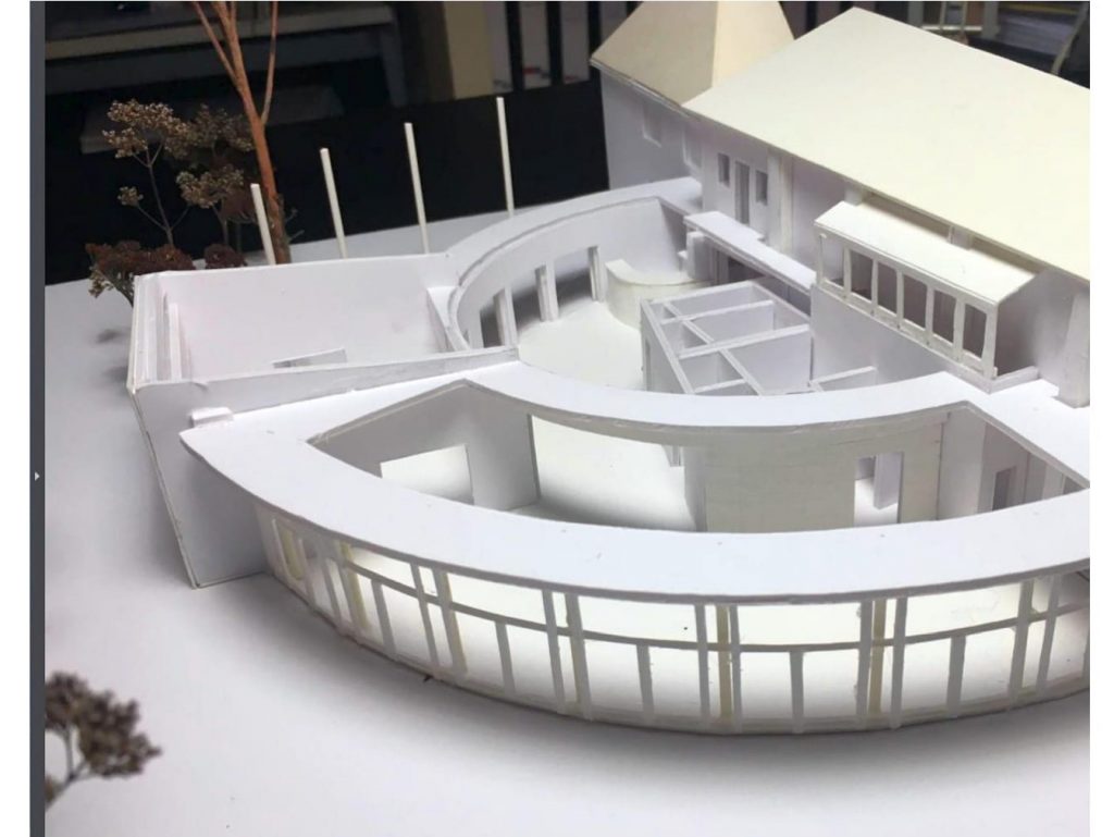 Der Theaterverein übernimmt die Koordination des Projekts in eigener Regie. Dafür wurde der Architekt Günter Haase gewonnen, der gestern seinen Entwurf vorstellte. Danach wird ein fast halbrunder Bau das bisherige Foyer mit dem Theatersaal verbinden. Der erhält dafür einen neuen Eingang. Auch die bisherige Außentreppe zum Technik- und Vorführraum wird in den Bau integriert und damit vor dem Wetter geschützt.