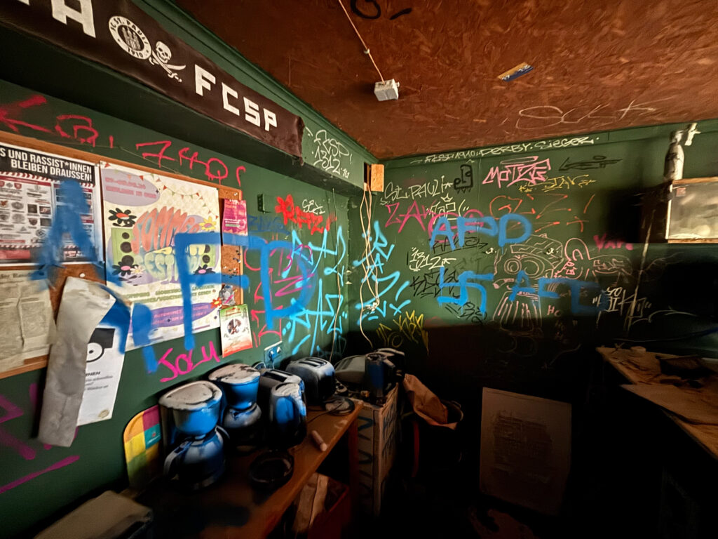 In der Nacht vom 01.11 auf den 02.11 drangen Unbekannte in das Autonome Jugendhaus (AJH) Bargteheide ein. Sie schlugen ein Fenster auf der Rückseite des Gebäudes ein, besprühten die Innenräume mit Hakenkreuzen und AfD-Schriftzügen, verwüsteten