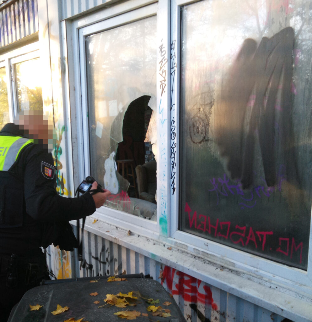 Nach der Entdeckung der Verwüstung am 02.11 wurde die Polizei umgehend informiert. Diese erschien zwar am Tatort, verließ diesen jedoch nach einer kurzen Begutachtung wieder, ohne Spuren wie Schuhabdrücke im Feuerlöscherstaub oder mögliche Spuren an der Einbruchstelle zu sichern.